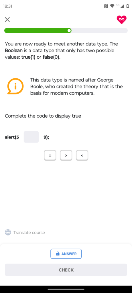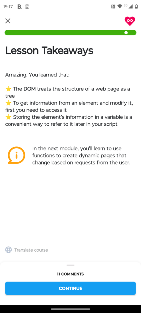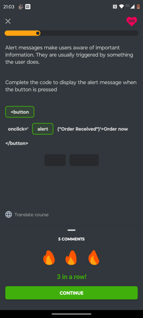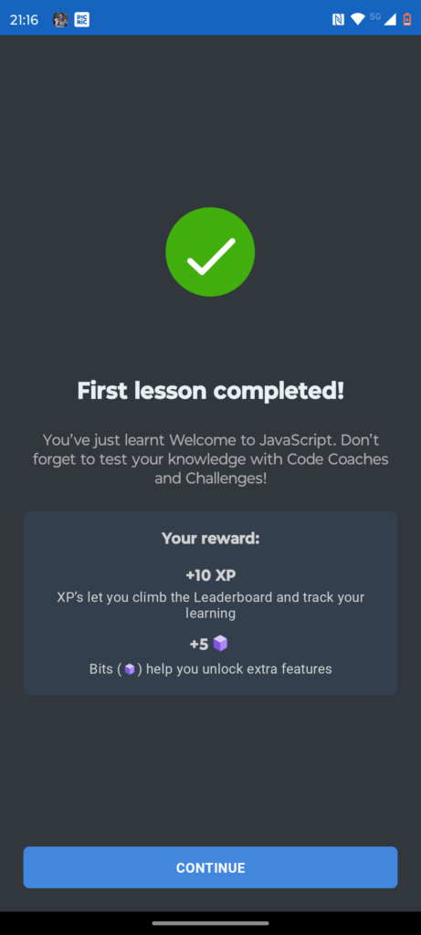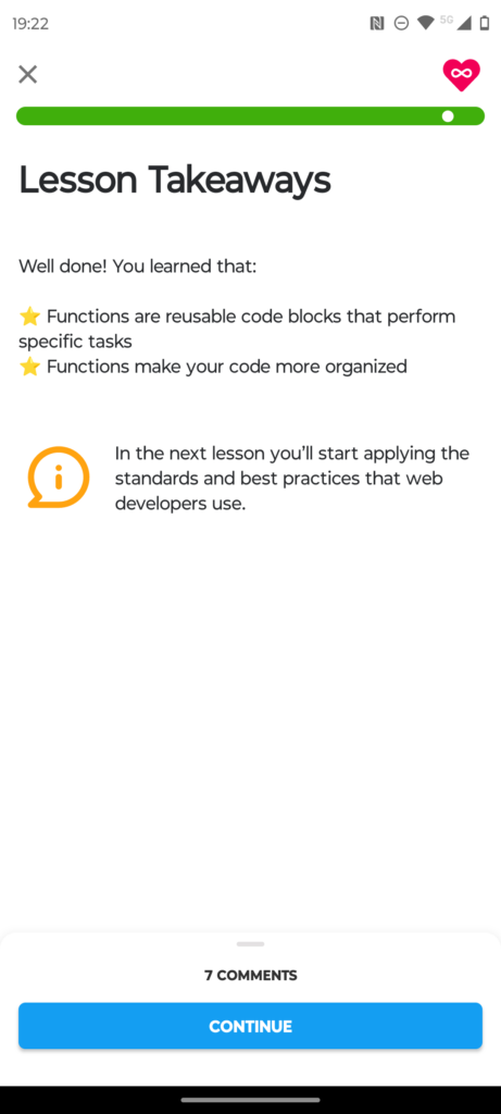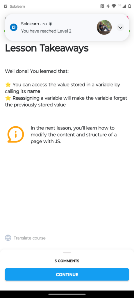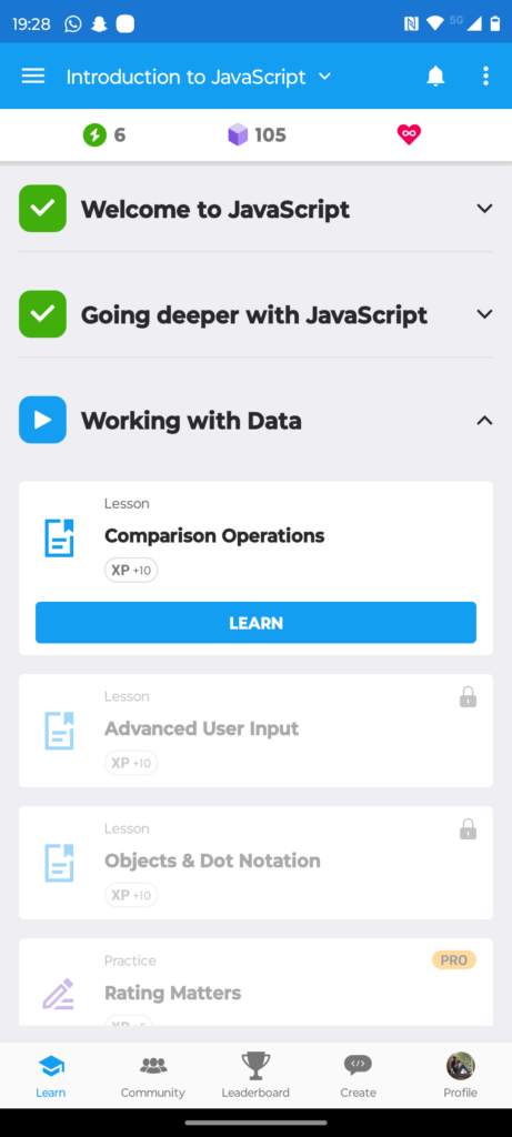 Even een quicky vanavond wegens een vol programma, kleine javascript lesjes volgen met de Sololearn app.